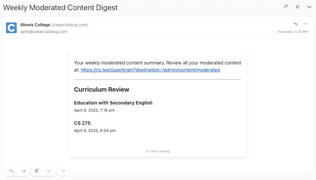 Approval Workflow Email Digests are one more way Clean Catalog helps institutions simplify their editorial workflows without sacrificing accuracy or compliance. It’s a smarter way to keep your catalog moving forward without bombarding your team with notifications.